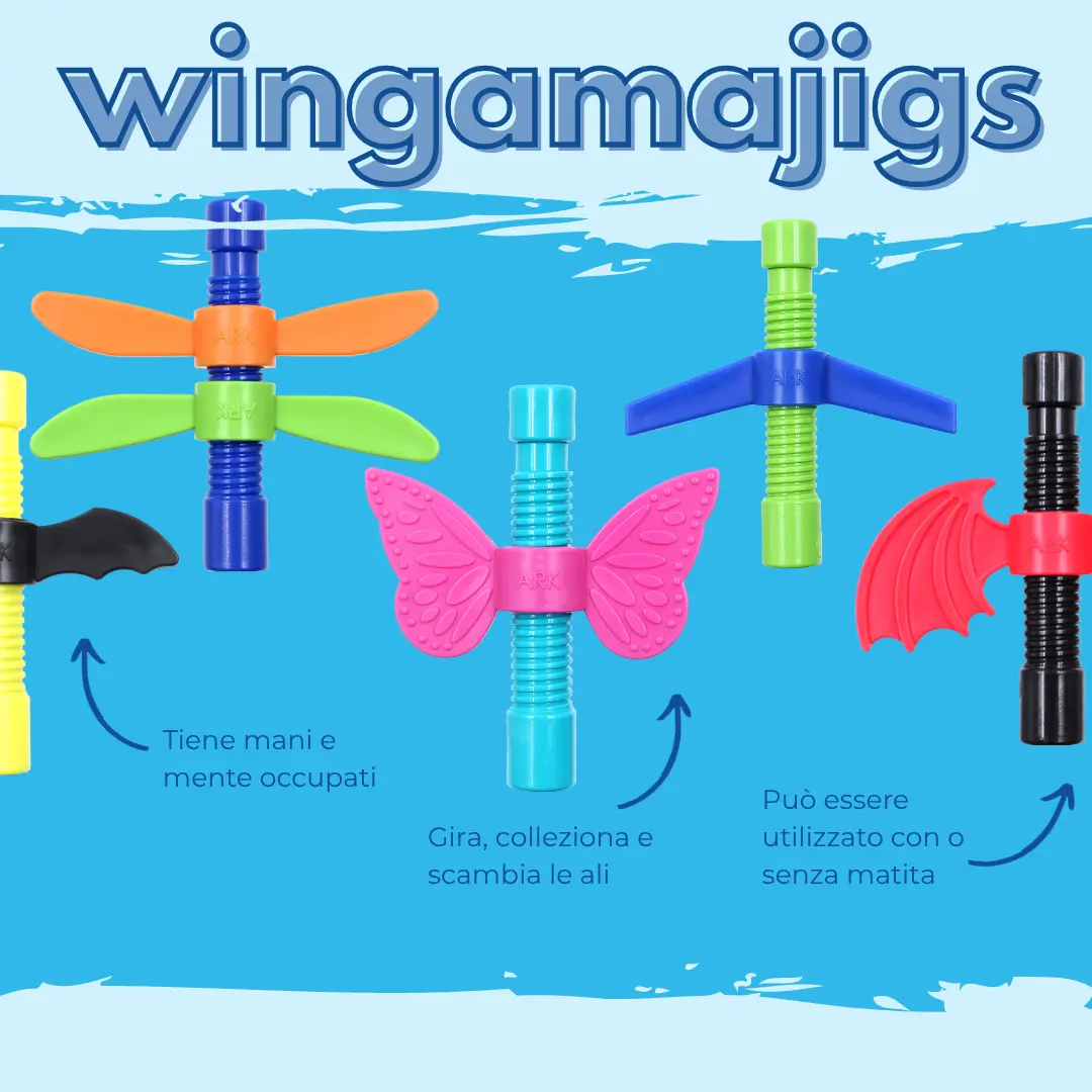 I Wingamajigs di ARK® sono gli strumenti fidget più cool con ali che "volano", ideali per bambini che vogliono tenere le mani occupate e la mente concentrata. Scegli tra drago, aereo, farfalla, libellula o pipistrello - o collezionali tutti! 🐉✈️🦋🦇