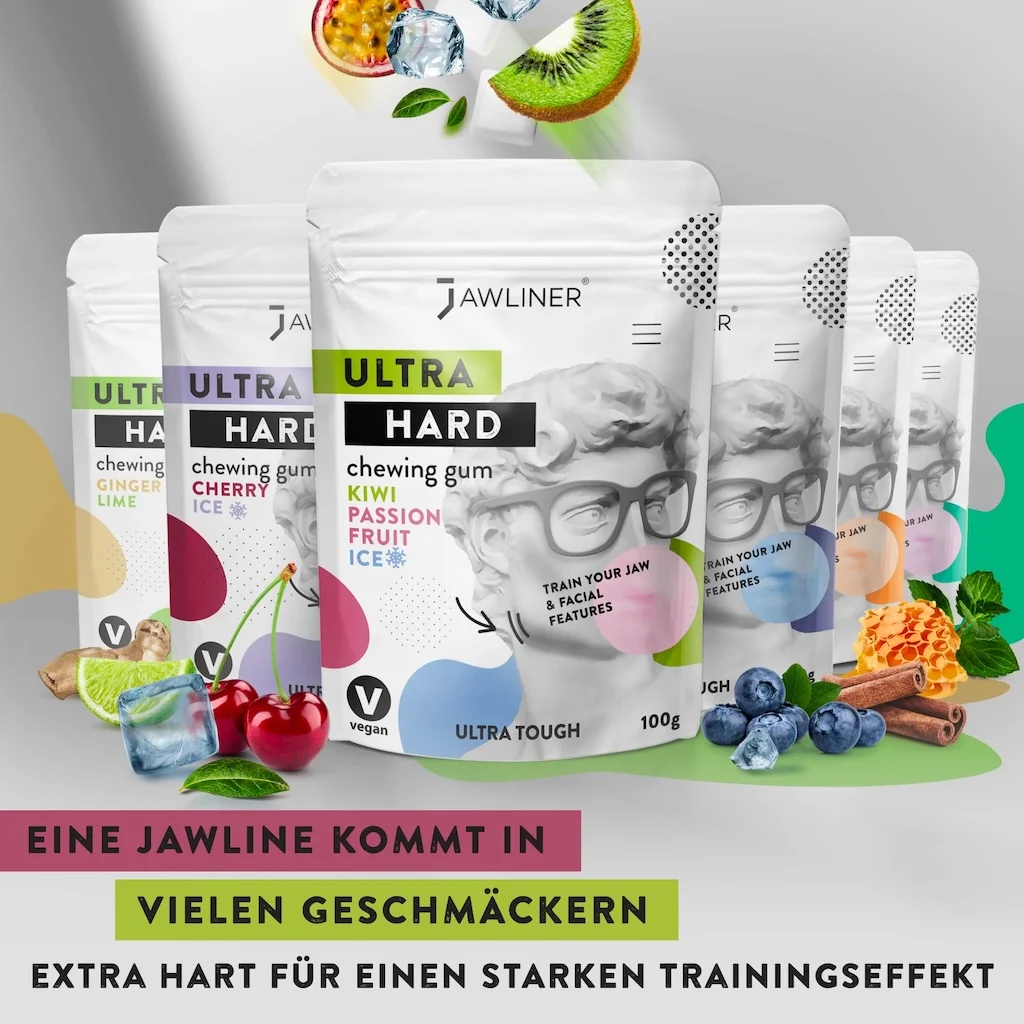 Con Jawliner® Gum allena in modo efficace i muscoli della mandibola e del viso mentre mastichi, senza dispositivi e in modo discreto, nella vita quotidiana. A differenza delle gomme comuni, che offrono poca resistenza, Jawliner® è molto più dura e attiva oltre 40 muscoli del viso.