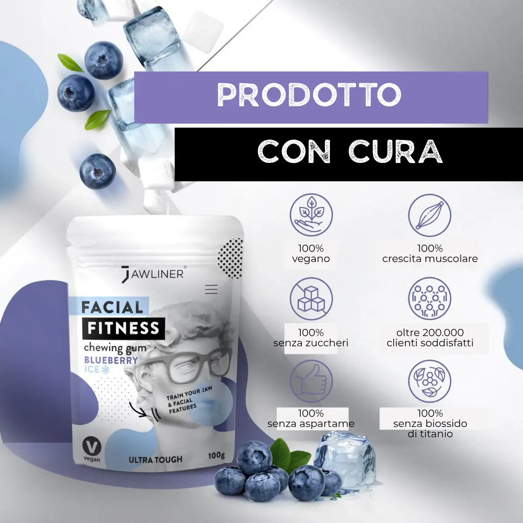 - Jawliner® fitness gum (dura) – 100 g, sufficiente per ca. 1–2 mesi