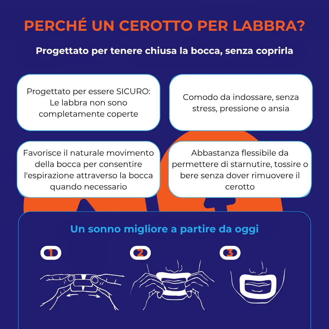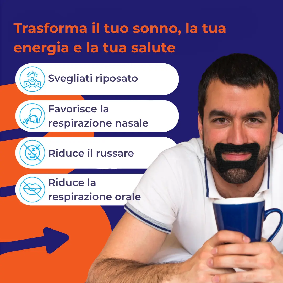 - Per il massimo supporto della respirazione nasale: SleepyStrip (aderisce direttamente alle labbra)