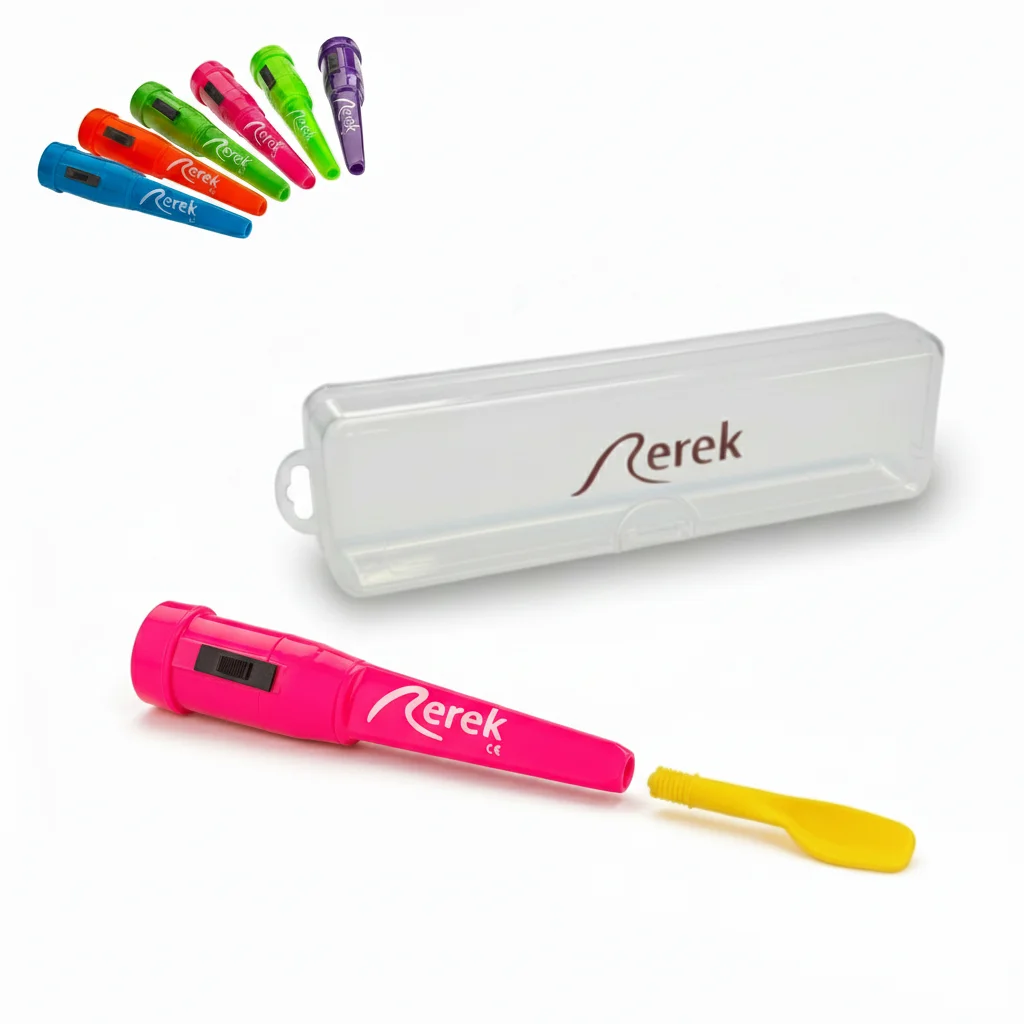 Il Rerek è uno strumento vibrante logopedico progettato per supportare la terapia del rotacismo, l’elicitazione della “R” alveolare e il miglioramento della motricità orale. La particolare vibrazione del motore integrato mette la lingua in vibrazione tramite la punta applicata, aiutando ad avviare e stabilizzare una corretta articolazione del suono. Allo stesso tempo il sistema può essere utilizzato per la stimolazione sensoriale e come supporto nella terapia funzionale orale.